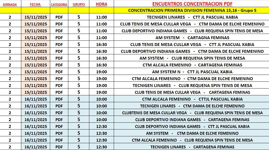 Además, Linares, acoge sábado y domingo, también en el pabellón «Andalucia», la concentración de Primera División Femenina, también con la presencia de equipos linarenses. La programación es la siguiente: