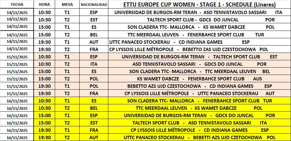 Del 14 al 16 de Noviembre, Linares acoge a los 12 equipos europeos que participan en la primera ronda de la ETTU Europe Cup.