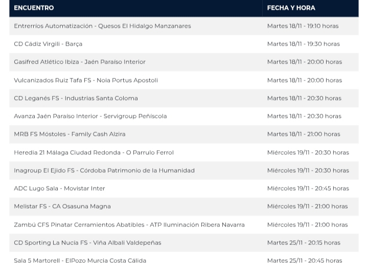Por último el ADC Lugo Sala equipo histórico que milita en Segunda División B recibe a todo un Movistar Inter. El equipo que entrena el jienense Fermín Hidalgo dispondrá de un reto ilusionante en un partido que se disputará a las 20:45 horas.