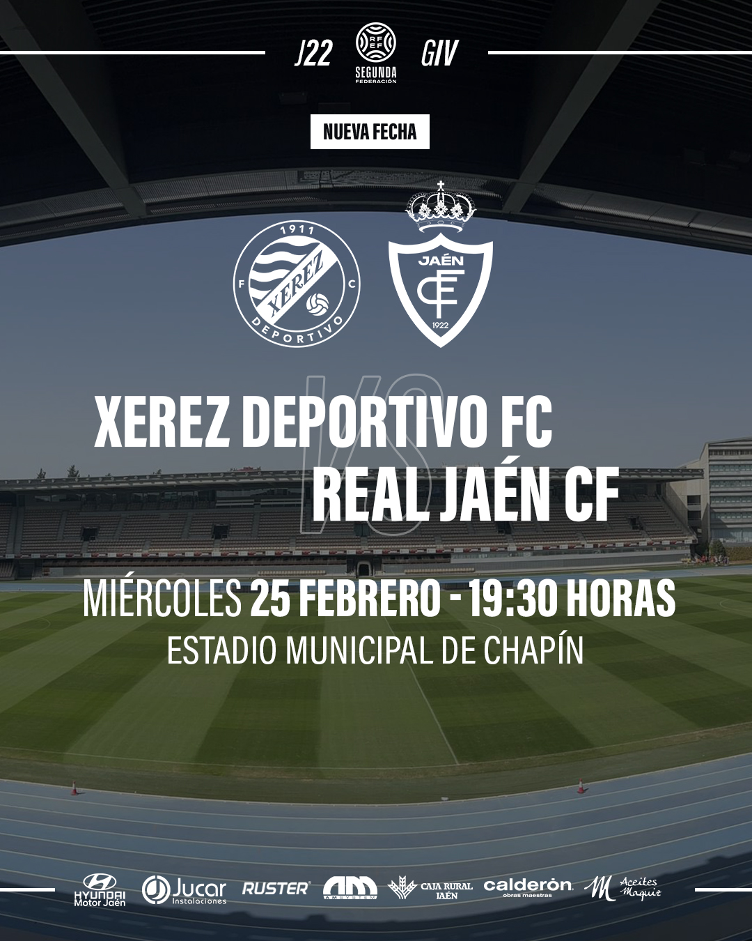 El Real Jaén lo ha comunicado este miércoles. Recordemos que la situación en Jerez de la Frontera no era la idónea para la disputa del encuentro correspondiente a la vigesimosegunda jornada liguera que tenía que haberse disputado el pasado domingo a las seis de la tarde en el Estadio Chapín.