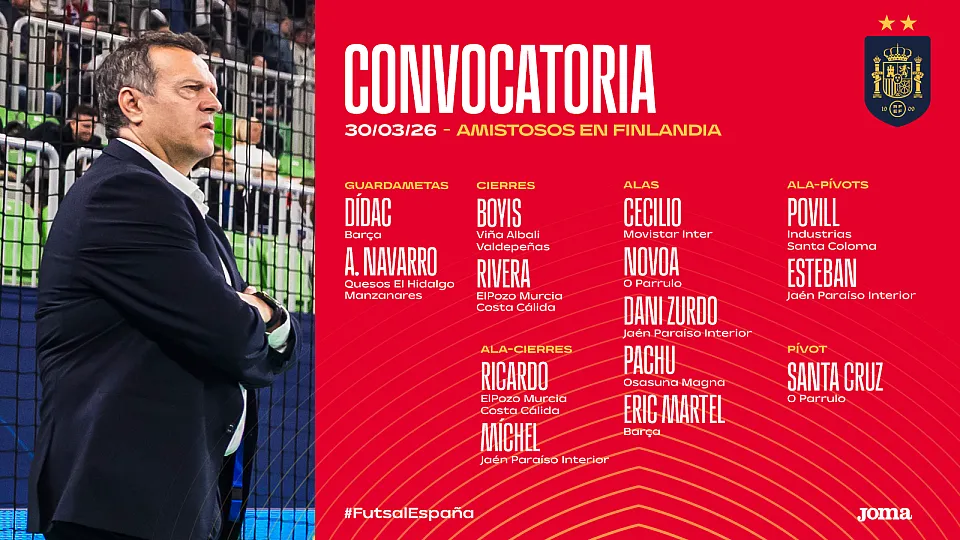 En esta ocasión no estará el también jienense Antonio Pérez, habitual y MVP del último Europeo de Fútbol Sala, hace mes y medio.
