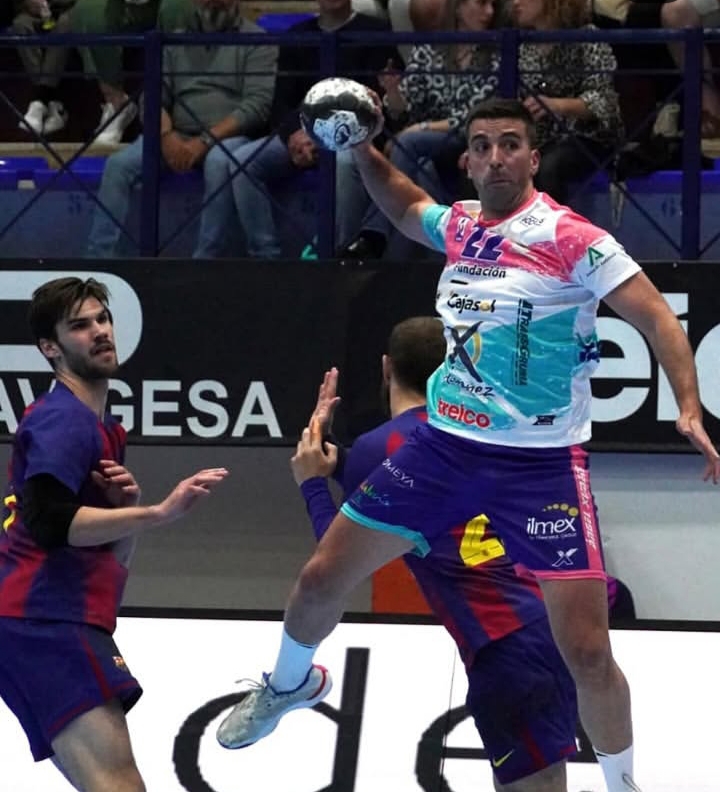 El jugador jienense consigue su estreno en la máxima categoría del balonmano nacional tras debutar con el Cajasol Ángel Ximénez en su partido ante el FC Barcelona todo un trasatlántico